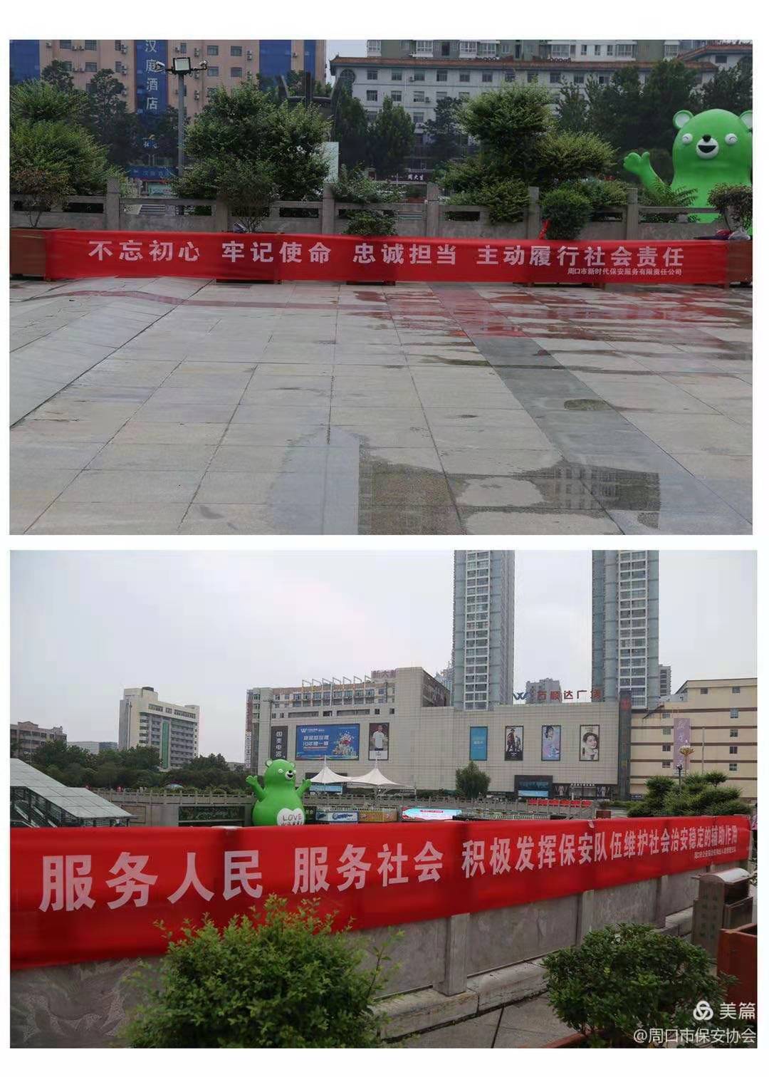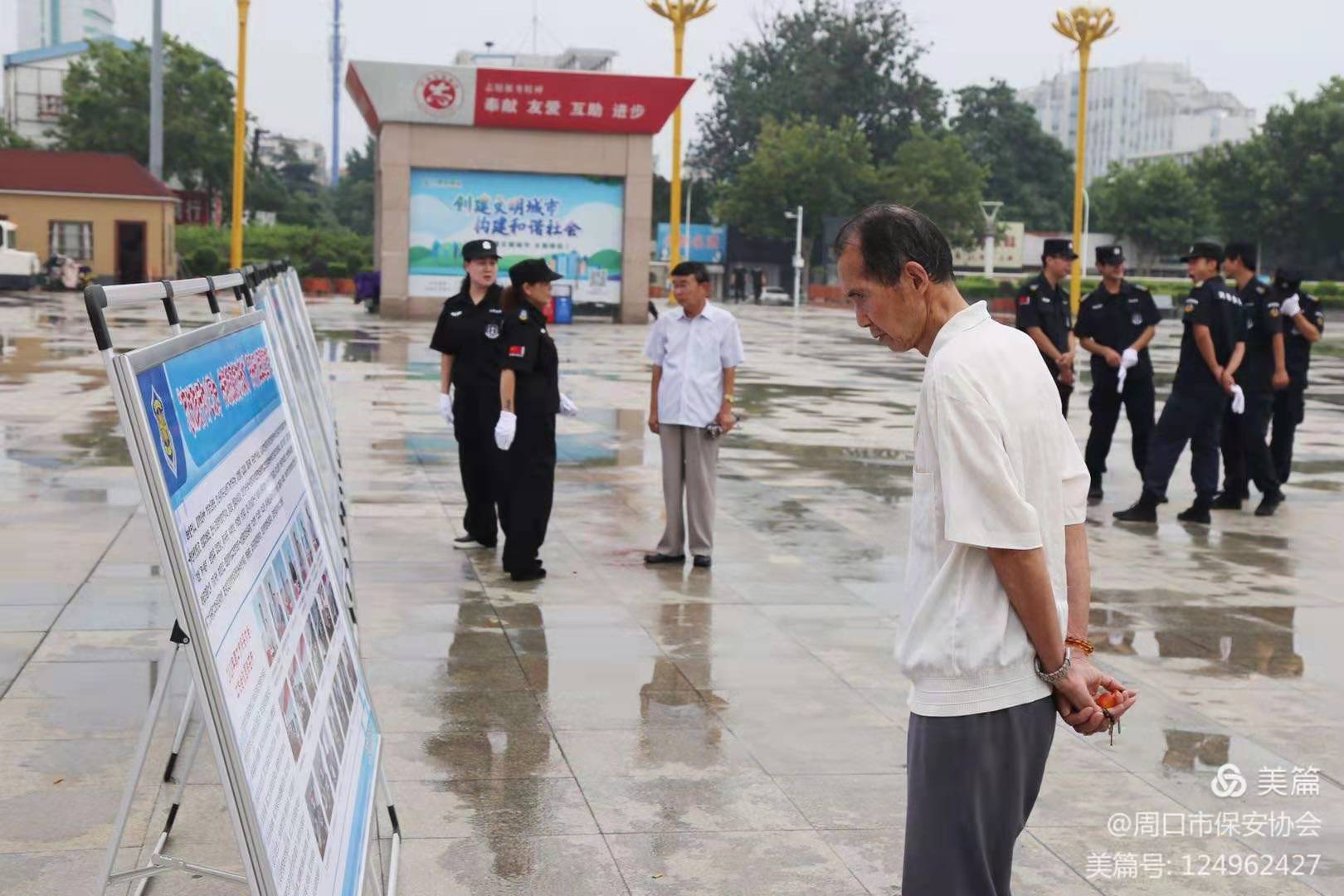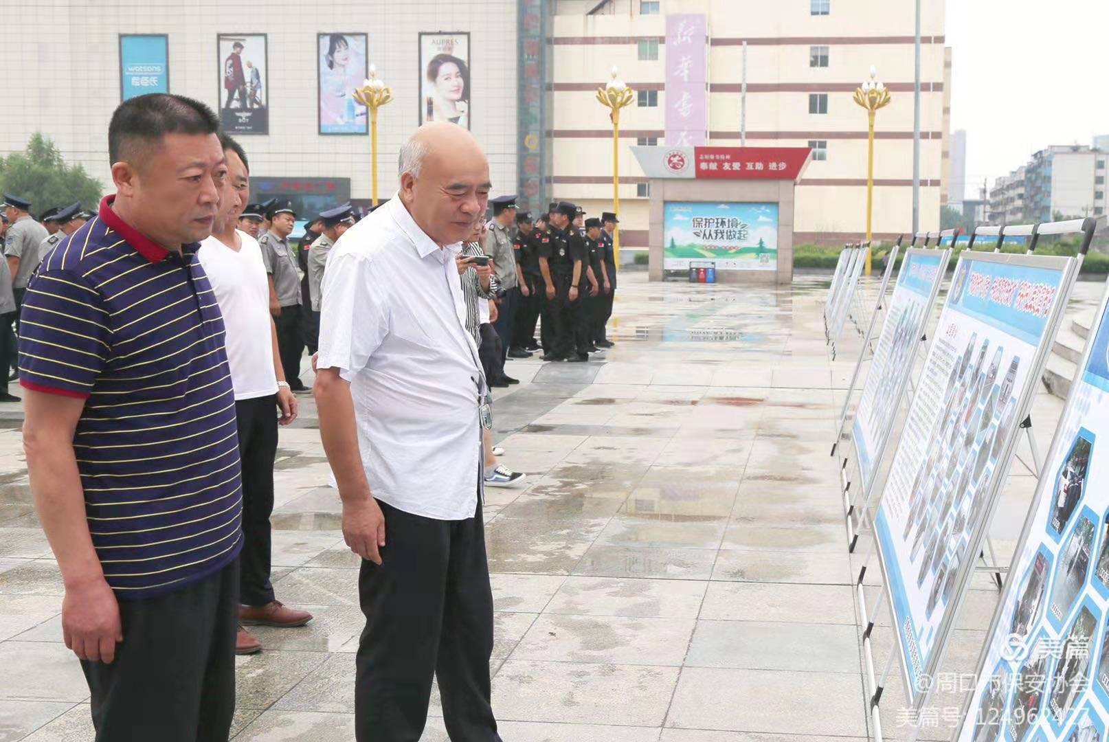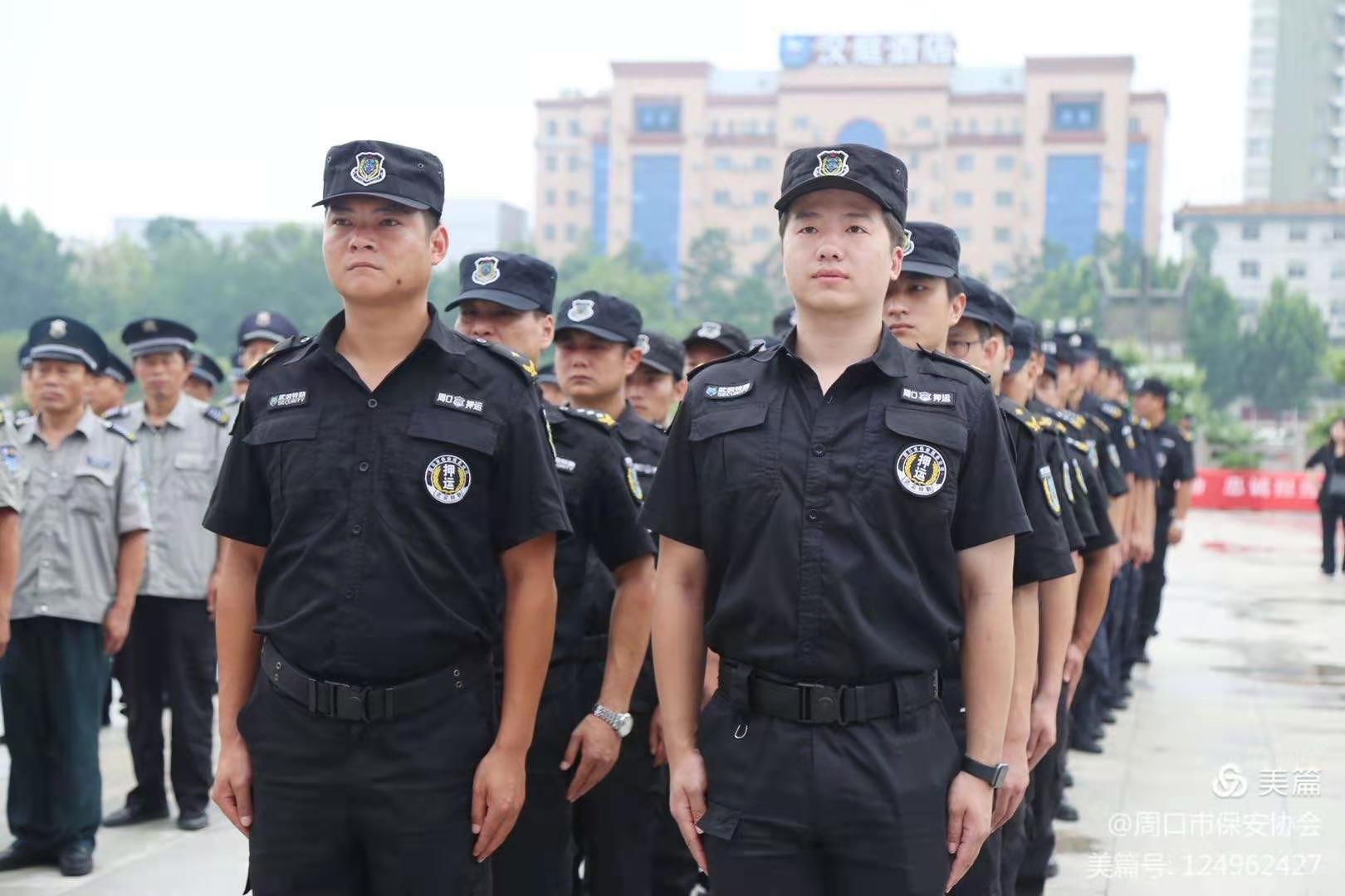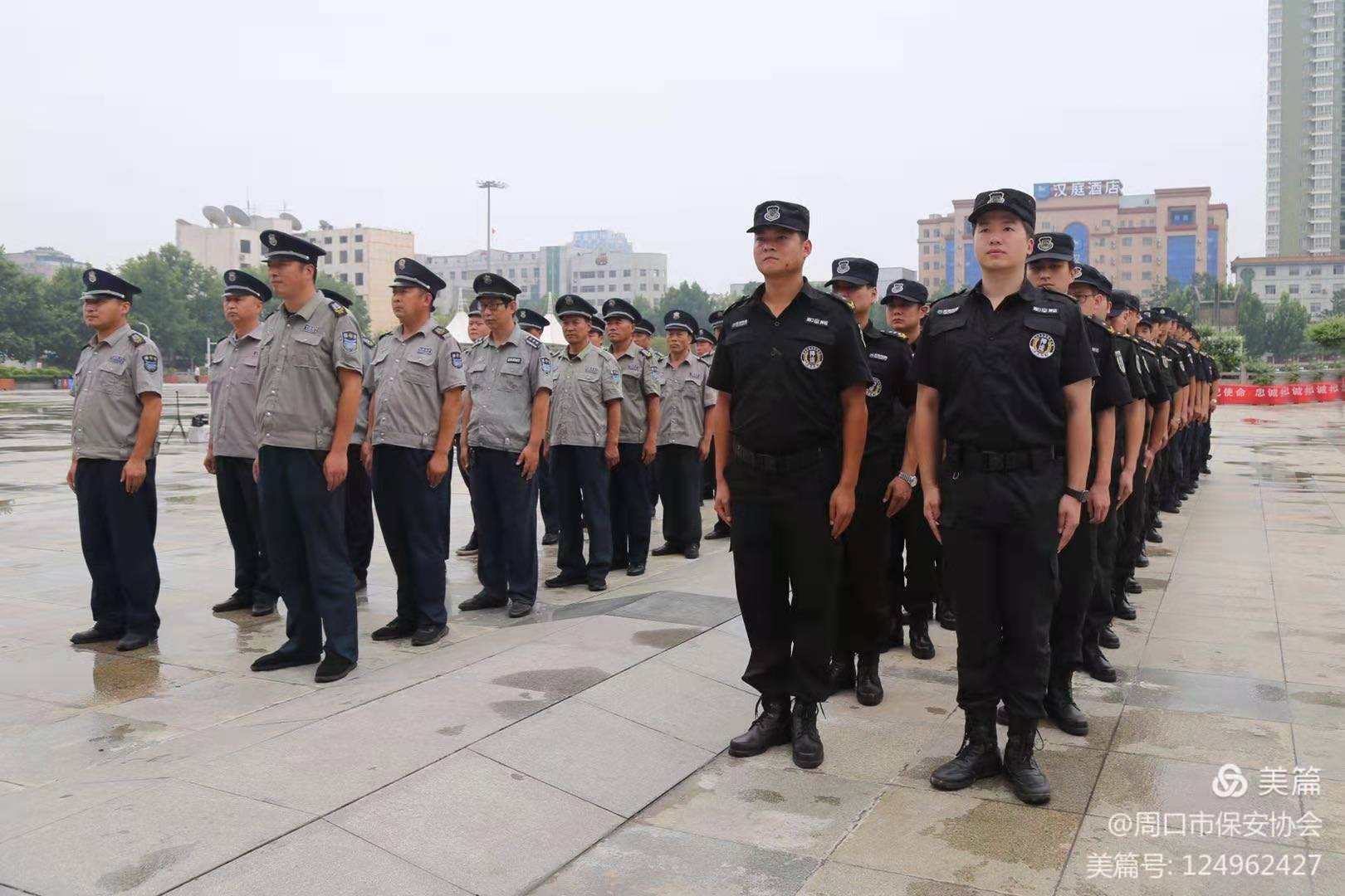 7月24日上午,周口市保安协会按照公安部、省公安厅和市公安局的安排部署,组织周口市新时代安保服务有限责任公司、河南省杰盾保安服务有限公司、河南省金泰保安服务有限公司、河南金卫保安服务有限公司等会员单位在市中心五一广场隆重举行以“忠诚践行初心使命、共筑抗疫抗洪长城”为主题的保安行业主题宣传日活动。市保安协会会长范志刚、常务副会长侯长建、副会长杨书杰、秘书长李清,新时代保安公司副总经理耿学争,金泰保安公司经理张贝连,杰盾保安公司经理张玉勤,金卫保安公司负责人及保安行业的优秀保安员代表等120余人参加了此次活动。