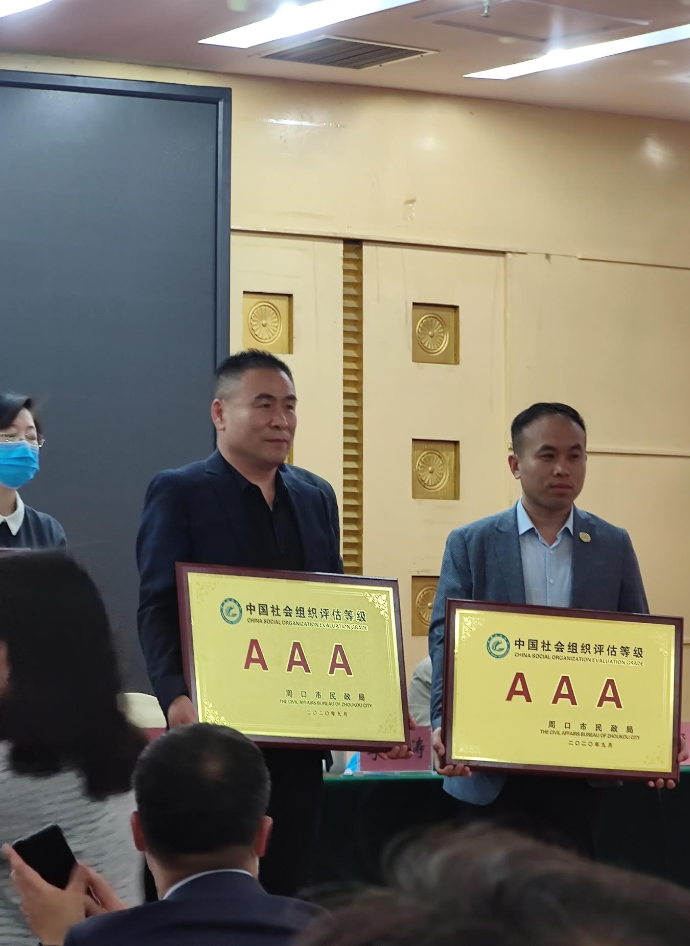 大会对获得中国社会组织评估优秀的单位进行了授牌仪式,周口市保安协会荣获“中国社会组织评估等级AAA级”荣誉,保安协会秘书长李清同志代表保安协会领取了这一荣誉。